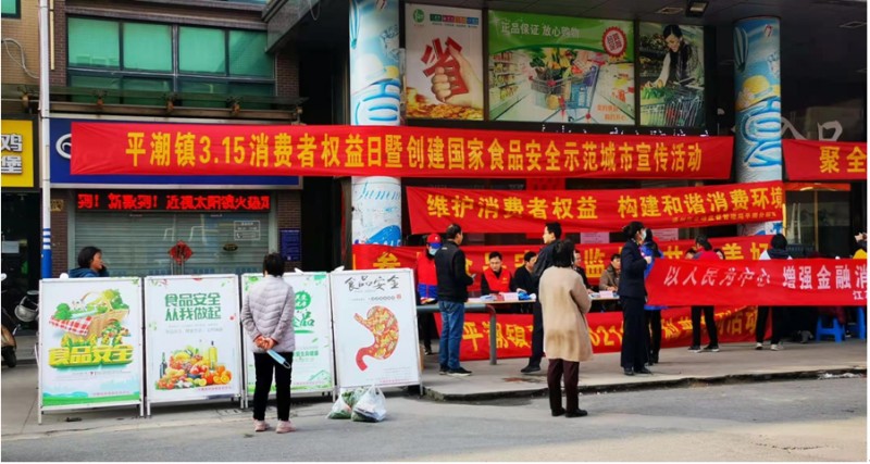 中国江苏网3月16日南通讯 为进一步维护广大消费者的合法权益,提高消费者的维权意识,3月15日上午,平潮镇食安办、妇联、科协、文教办、打私办、政法办联合平西村、市场监管局平潮分局、社区教育中心、平潮中心卫生院、江苏银行、招商银行等多部门在平西村和润国际超市门口联合开展“平潮镇315消费者权益日暨创建国家食品安全示范城市”宣传活动。