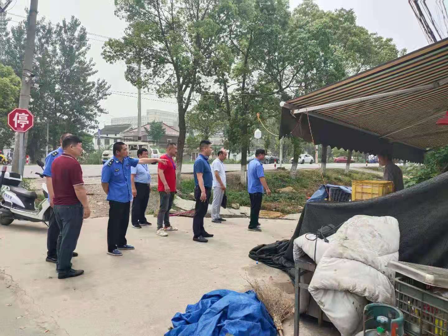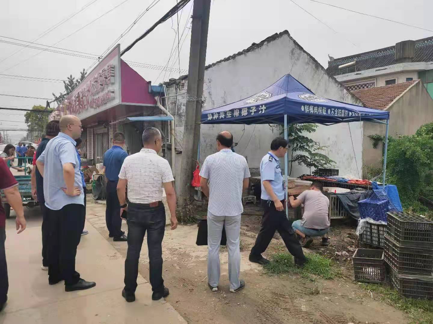 南通市通州区川姜镇三合口村五组有两个鸡禽售杀点存在多年,且露天沿街摆放,夏日臭气熏天、污水横流,“散、乱、污”严重。在多次劝告搬离无果后,由该区住建局牵头的第五工作组约请城管、公安、镇、村等多部门进行了集体会商,制定了详细的工作方案,并于6月11日上午,牵头进行了集中清理,拆除了违规占道搭建的棚子,搬离了所有宰杀工具和70余只生禽,对现场进行了消杀和冲洗。