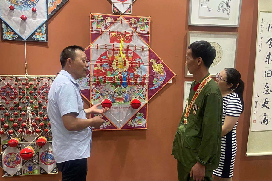活动现场,由兴仁镇酒店社区剪纸传承人朱树云、长林桥村板鹞传承人王志清和装裱传承人王建高分别带来了剪纸、板鹞、裱画作品。其中,一件庆祝建党100周年的板鹞作品尤其的吸引大家眼球,板鹞传承人王志清向大家讲述了该作品的创作理念,制作初心。非遗作品是传承人的精心制作,他们善于挖掘丰富多彩的兴仁传统非遗文化,以此演绎红色文化,诠释红色精神,传承革命精神。
