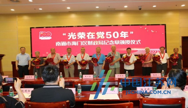 中国江苏网讯 6月30日上午,南通市海门区财政局举行“光荣在党50年”纪念章颁发仪式,该局党组书记、局长肖飙代表局党组为党龄超过50年的10位老党员代表颁发纪念章,并向47名离退休老党员、老同志表示崇高敬意,向大家为财政事业发展作出的贡献表示衷心感谢,并希望他们始终保持共产党人的政治本色,一如既往地关心支持海门财政工作和经济社会发展。
