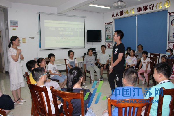 中国江苏网讯 为丰富青少年暑期生活,培养青少年良好的心理素质,提高青少年认识自我、承受挫折、调节情绪的能力,7月6日,崇川区新城桥街道文峰社区新时代文明实践站、妇联、关工委特邀南通市五里树小学顾燚老师到社区开展“大饼、油条、豆浆”青少年心理健康辅导活动。
