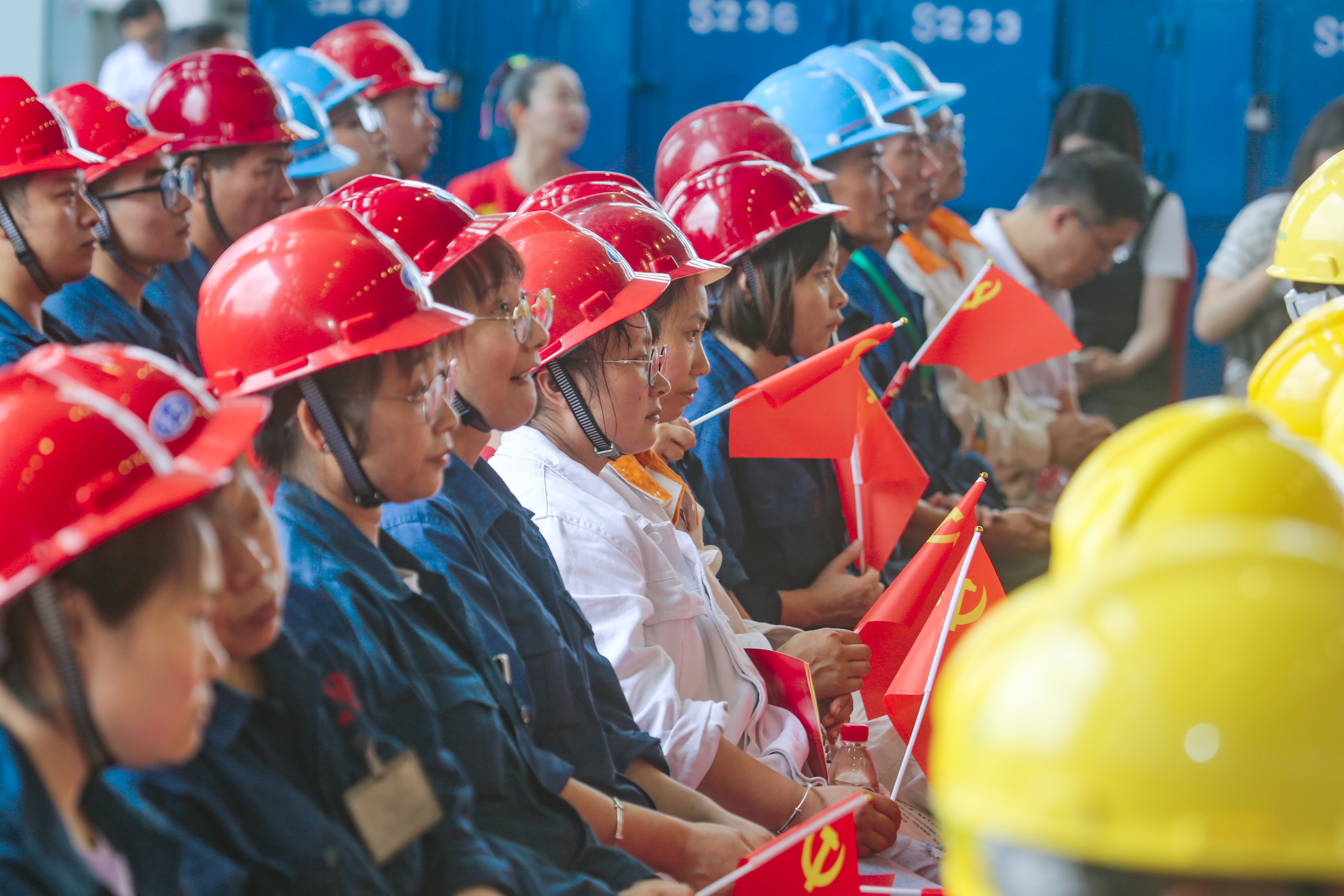 中国江苏网7月8日南通讯 “将企业生产经营与项目建设融入党史学习教育,以党建为引领,让支部建在项目上、党旗飘在阵地上、党员冲在火线上、关爱工人在心上,切实让党旗在项目一线高高飘扬……”6月16日,鹏飞资源综合利用成套装备生产项目“党旗在项目一线高高飘扬”活动举行,这也是江苏省海安市推动党史学习教育“走深”“走心”“走实”,党员干部在项目一线“建强组织筑堡垒、做优服务强项目、为民办事解难题”的真实写照。