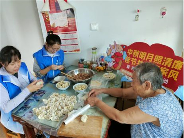 9月15日,曙光社区党委联合曙光社区妇联、苏通大桥有限责任公司通洋高速西亭收费站来到辖区援疆空巢老党员朱海美家,陪着老人包饺子、话家常、过佳节。
