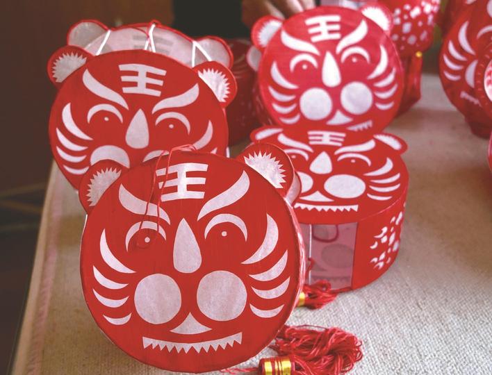 江苏工艺美术大师、南通第四代“包家灯”传承人何林祥制作的老虎造型花灯。 记者俞鑫城