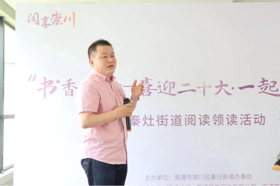 中国江苏网5月23日南通讯 “读书可以让我们慢下来,审视自己的内心,唤醒自己。分享一本好书,愉悦自己的同时也与他人产生共鸣。”5月20日下午,崇川区秦灶街道“书香奋斗,喜迎二十大,一起读好书”阅读领读活动走进富美全国职工书屋,30余名来自机关、企业、医院等各行各业的职工阅读爱好者参与其中,活动同步采用线上直播方式进行,近千名网友在线观看,感受浓浓书香味。