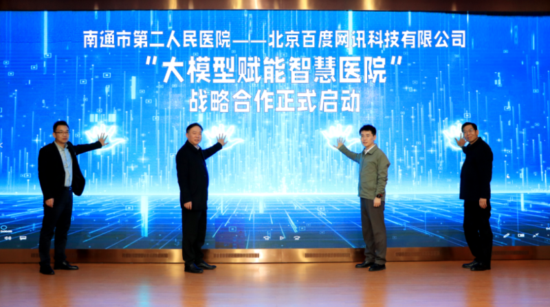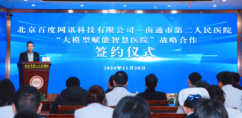 中国江苏网12月2日南通讯 11月28日下午,南通市第二人民医院与百度健康签署“大模型赋能智慧医院”战略合作,双方将基于南通二院的学科优势、区位优势及影响力,融合百度健康在AI问诊、大数据分析、智能诊断等方面的优势,共同打造线上线下一体化“互联网+健康”服务模式,真正打通医疗服务诊前、诊中、诊后网络全流程,让数据多跑腿、看病群众少跑路。