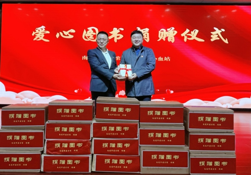 捐赠仪式上,南通市图书馆馆长季丰吉郑重地将爱心图书交到南通市中心血站站长许诚手中,这不仅是书籍的交接,更是爱心与责任的传递。随后,两人共同为“南通市中心血站爱心图书角”揭牌,爱心图书角的落成,如同一座知识的桥梁,为无偿献血者提供了求知与探索的平台,更为无偿献血服务水平的不断提升搭建了新的赛道。