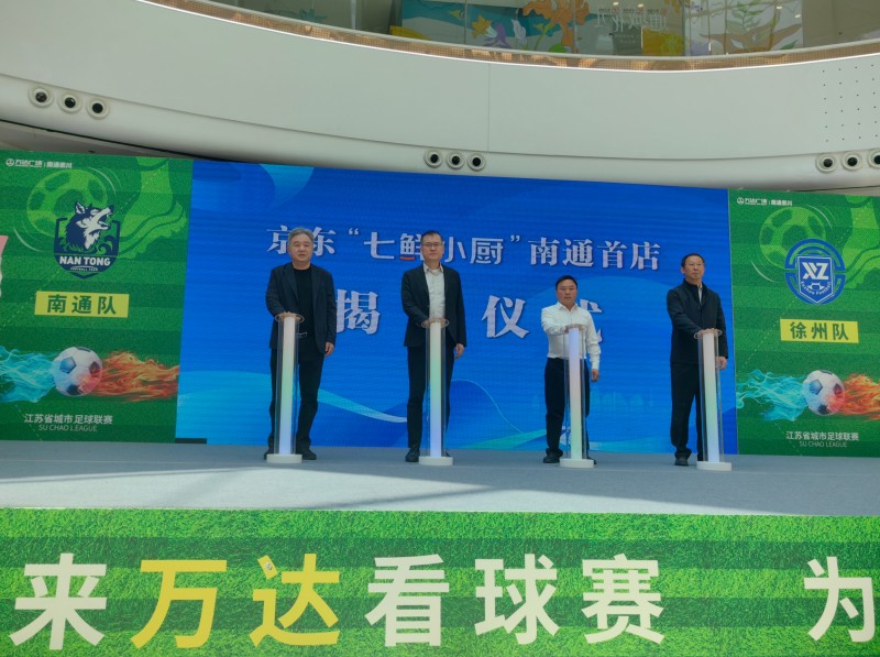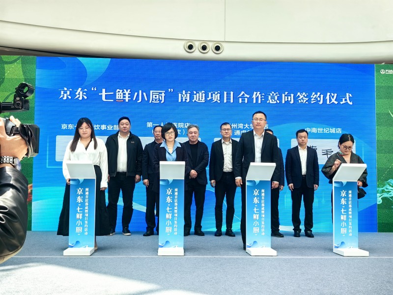 中国江苏网4月25日南通讯 4月25日上午,京东“七鲜小厨”南通首店落成暨项目签约仪式在南通万达广场举行。崇川区委常委、常务副区长李建波,京东集团相关负责人魏晓晖,以及南通市多部门领导、行业协会代表和餐饮单位代表齐聚一堂,共同见证这一重要时刻。