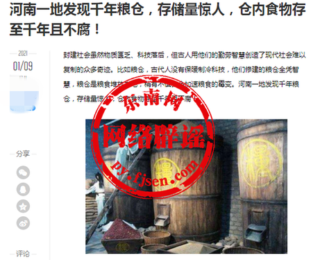 可见,网传“回洛仓仓内食物千年不腐”系不实消息!