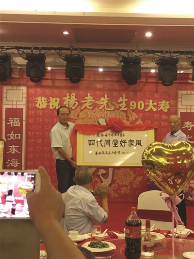 杨振海(右)在90岁寿宴上。
