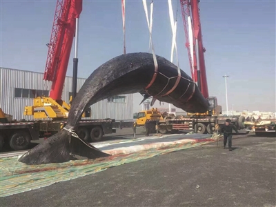 一年前死亡的抹香鲸 昨天制成标本“回家”了