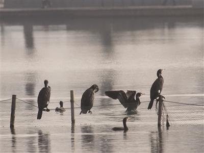 “据我观察,鸬鹚是今年春季第一批到玄武湖的‘客人’。它们似乎很满意这片湖中食物丰富、美丽湖畔的栖息地。”一位专门观察鸟类的专家说。