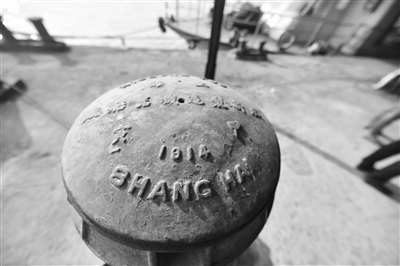 昨天下午,记者来到中山码头,在离码头百米远的地方,停靠着一艘大型趸船。趸船最前方,有一个一人张开双臂才能抱住的铁质绞关,它是用来起放固定趸船的铁锚的。铁锚尚在水里看不到,但从它比成人手臂稍细的锚链子可以看出,趸船用的铁锚是何其大。经百年,没刻意保护,铁质绞关尚能顺畅旋转,轻轻地拂去绞关最上面的灰尘、锈迹,“求新制造机器船厂”的字样依稀可辨,时间为1914年。