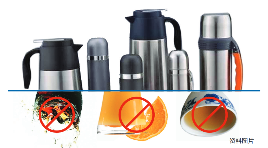 提醒:保温杯装水时,重金属的迁移往往以非常缓慢的速度进行,通常不会影响人体健康。但是盛放酸度比较大的食品时,这种迁移速度就会加剧,极有可能在短时间内迁移出较多的重金属。如果长期食用重金属含量较高的食品必然导致在体内蓄积。