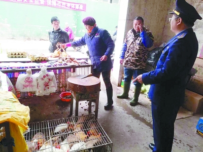工商执法人员在主城区开展活禽交易检查。
