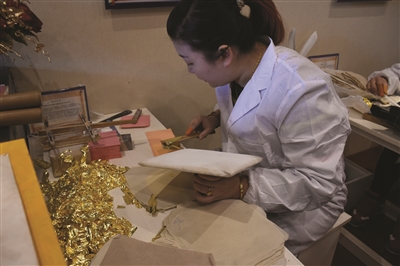 现场展示金箔工艺:千锤百炼后才能薄如蝉翼