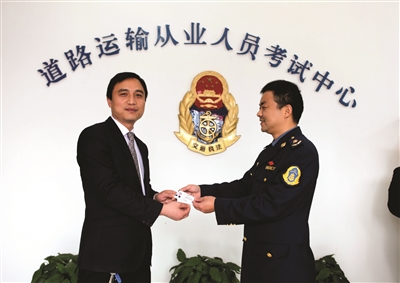 常州核发首张《网络预约出租汽车驾驶员证》。马奔 摄