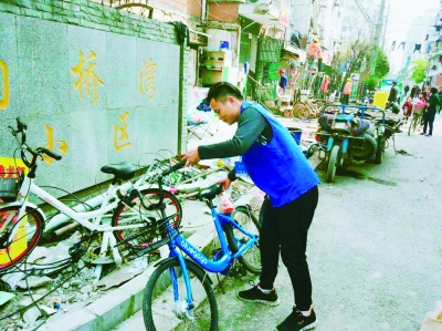 曾聪和记者说起了他加入“小蓝侠”的故事。“共享单车环保绿色,我很喜欢。但有不少人乱停乱放,害得需要它的人经常找不到车。”曾聪说,有时看到巷子里有乱停的单车,他就会主动开锁将它们骑到路边。后来,他听说有个志愿者团队叫做“小蓝侠”就是干这些事情的,索性加入了“组织”。从此,每天在路上边逛边找。“最多的一天,我找到了58辆车,让这些被占为己有或是藏在巷内的车辆重新为更多的人服务。”曾聪说。