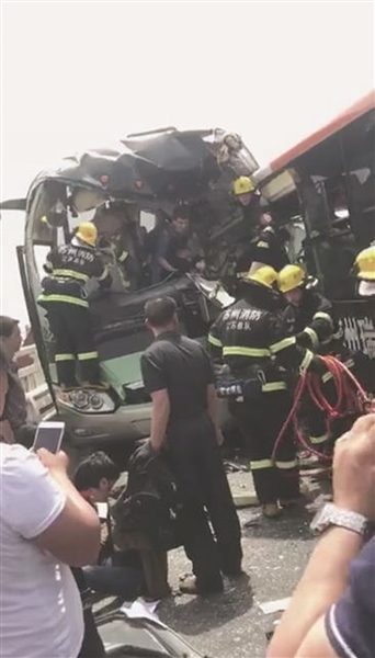 公交车与沪牌大巴相撞 太湖大桥发生车祸致2死38伤