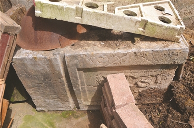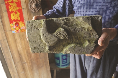 18日,记者在村民陈才定家见到藏身院落的两尊古石(如上图),从表面看这两尊古石有条口,石壁上有浮雕。村民们初步认定这是抱鼓石下的石座,71岁的陈左禹介绍,这原是村里四六公祠堂门前抱鼓石座。他小时候见过祠堂模样,许村100多户村民大都姓陈,就有四六公祠堂和小祠堂共2个祠堂,小祠堂坐落在村东南处,而四六公祠堂修建在村西南处,当年四六公祠堂有三间三进,第一进建有戏楼,第二进是大厅,第三进是祖宗牌位存放间,当年祠堂的作用主要方便村民进行一些议事祭祖和看戏等活动。