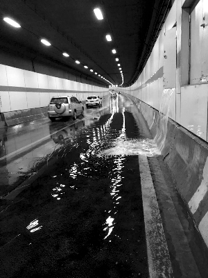 现代快报记者发现,这是一个月内扬子江隧道发生的第二起积水事故。6月29日上午7点,在隧道出城方向(隧道下层)入洞595米处,路面存在明显积水,积水路段有10多米长。最终排查结果为江南风塔消防水箱进水阀损坏。