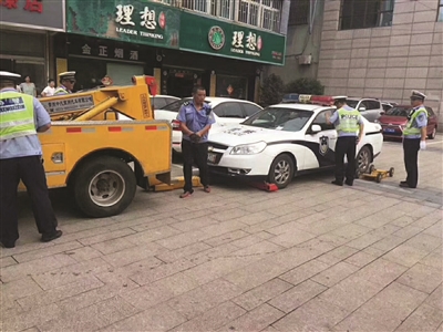 见其违停,交警随即叫来清障车,准备把车子拖到停车场。就在此时,警车司机来到现场准备开车。看到准备拖车的这一幕后,司机找到交警,声称自己只是上了个厕所而已,然后便想强行将车开走。