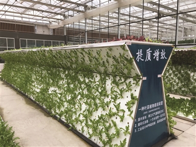 农科院的蔬菜不仅科技含量高,而且个个都“身怀绝技”。一大批长在“墙”上的蔬菜足以吸睛。和平时的墙面稍稍不同的是,这块长有蔬菜的“墙”有一个小“折角”,“墙”面上有数不清的小孔,每一个小孔里都有蔬菜生长,远远看上去,俨然是蔬菜正在“飞檐走壁”一般。