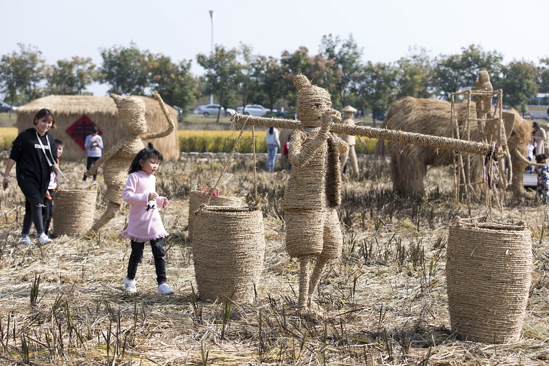 稻草人艺术展吸引儿童