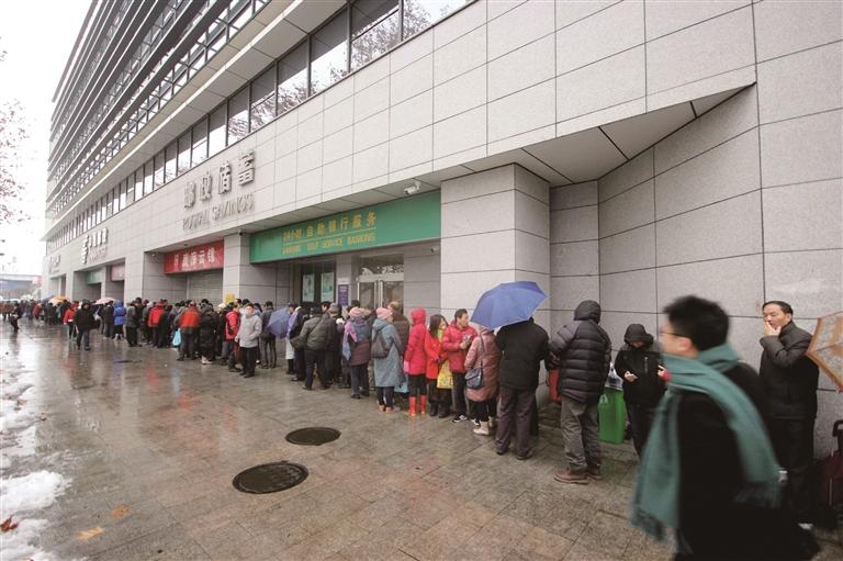 昨日,南京有13个线下网点接受市民“平价”申购《戊戌年》生肖狗年邮票(以下简称:狗年邮票),不少市民为了能买到邮票,凌晨踏着雨雪赶来排队。邮政人士表示,如果没有时间买到狗年邮票也不要紧,根据发行公告显示,今明两日这些网点依旧还有少量生肖票等着市民来平价兑换。