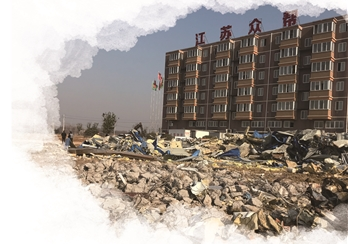 企业负责人孟国庆含泪告诉记者,就连60多万建起的门卫房也被推掉了,只留下一对石狮子丢在路边。望着眼前的景象,孟国庆泪流满面。他说,这些天来全家人眼泪都快哭干了。