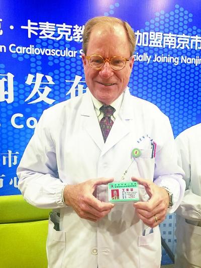 66岁的卡麦克是世界上第5位实施Javic人工心脏植入术的专家,曾获得“美国医师/外科医师最高荣誉奖”、“美国顶尖外科医生”等称号,在中国先后获得“江苏友谊奖”、“南京市荣誉市民”、“南京卫生特别贡献奖”,于2017年入选江苏“外专百人计划”。此次成行是作为江苏“外专百人计划”入选专家到第一医院工作。