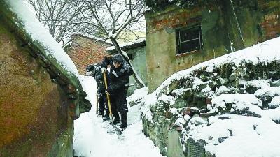 【情景再现】1月26日下午,鼓楼区老虎山上,顾永康和同事一起,正手握铁锹抓紧铲雪除冰。他们身后的老旧平房里,住着一位双目失明、80多岁的孤寡老人。待可供步行的道路打通以后,他们要把老人转移到安全的住处。