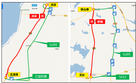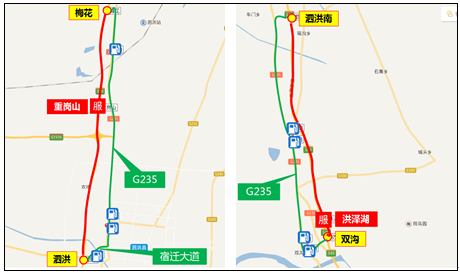沿线重岗山、洪泽湖、明祖陵3个服务区拥堵较为严重(见图2),公众可选择G235、S121、G205、S123、S205、S344等进行长距离或短距离绕行!有条件的可到地方道路加油!(见图3、图4)