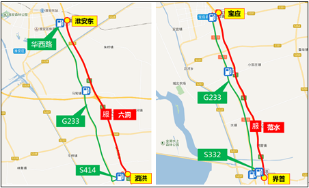 沿线洪泽、盱眙2个服务区拥堵较为严重(见图6),公众可选择G233、S237、G205等进行长距离或短距离绕行!有条件的可到地方道路加油!(见图7)