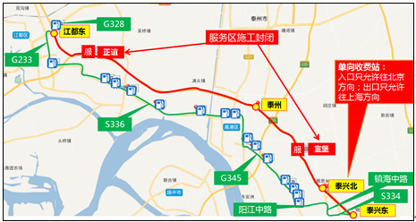 在扬州附近,公众也可从江都北、砖桥、江都南、江都东进行高速公路网和普通公路网切换!(见图12)