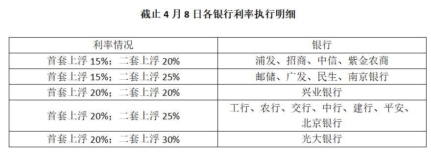 此外,该平台监测数据显示,南京地区有越来越多的银行开始执行首套房贷款利率在基准基础上上浮20%,兴业银行、工行、农行、交行、中行、建行、平安、北京银行、光大银行等9家银行执行该利率。执行上浮15%的银行有浦发、招行、中信、紫金农商行、邮储、广发、民生、南京银行。