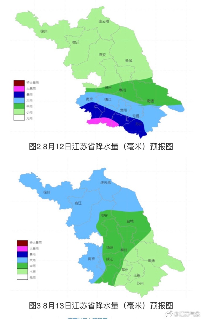 预计,12-13日,我省自南向北大部分地区将出现大到暴雨、局部大暴雨,并伴有强雷电等对流性天气。过程雨量:沿江和苏南30~60毫米、局部80~150毫米,长江以北大部分地区10~40毫米,局部50~70毫米;12日夜间-13日,全省大部分地区及沿海海面将出现偏东转偏南大风。具体预报如下: