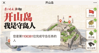 扬子晚报数字交互产品“开山岛 我是守岛人”界面。