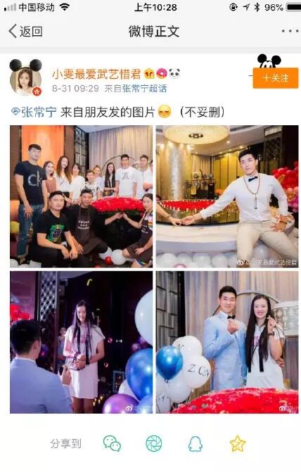 从网友晒出的图片显示,吴冠希为张常宁准备了惊喜派对,两人的幸福模样羡煞旁人。张常宁和吴冠希的恋情此前并不为外界所知,张常宁也只是在接受采访时说过对男友最基础的要求——“两米以上,不可能找差了。”而身高210公分的吴冠希恰恰符合条件。