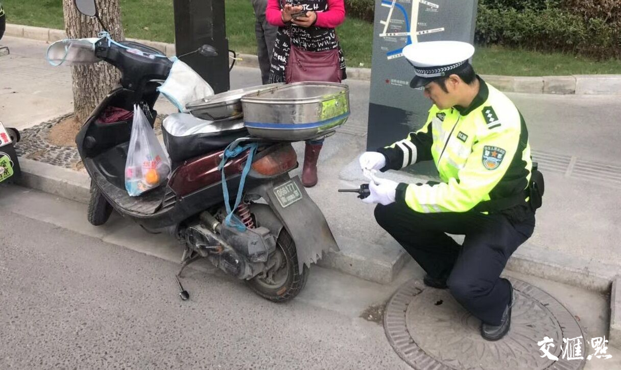 11月1日早上7点40分,南京交警六大队民警在建宁路郑和中路开展检查时发现,一辆悬挂助力车号牌的助力车仍在路上行驶,民警当即对车辆进行拦截。助力车驾驶人交代,这辆车是自己哥哥的。经过民警现场查询发现,这个号牌所对应的燃油助力车早已在报废点以牌照丢失为由办理完了报废手续,驾驶员也没有取得机动车驾驶证,属于无证驾驶。随后民警对车辆依法进行暂扣。