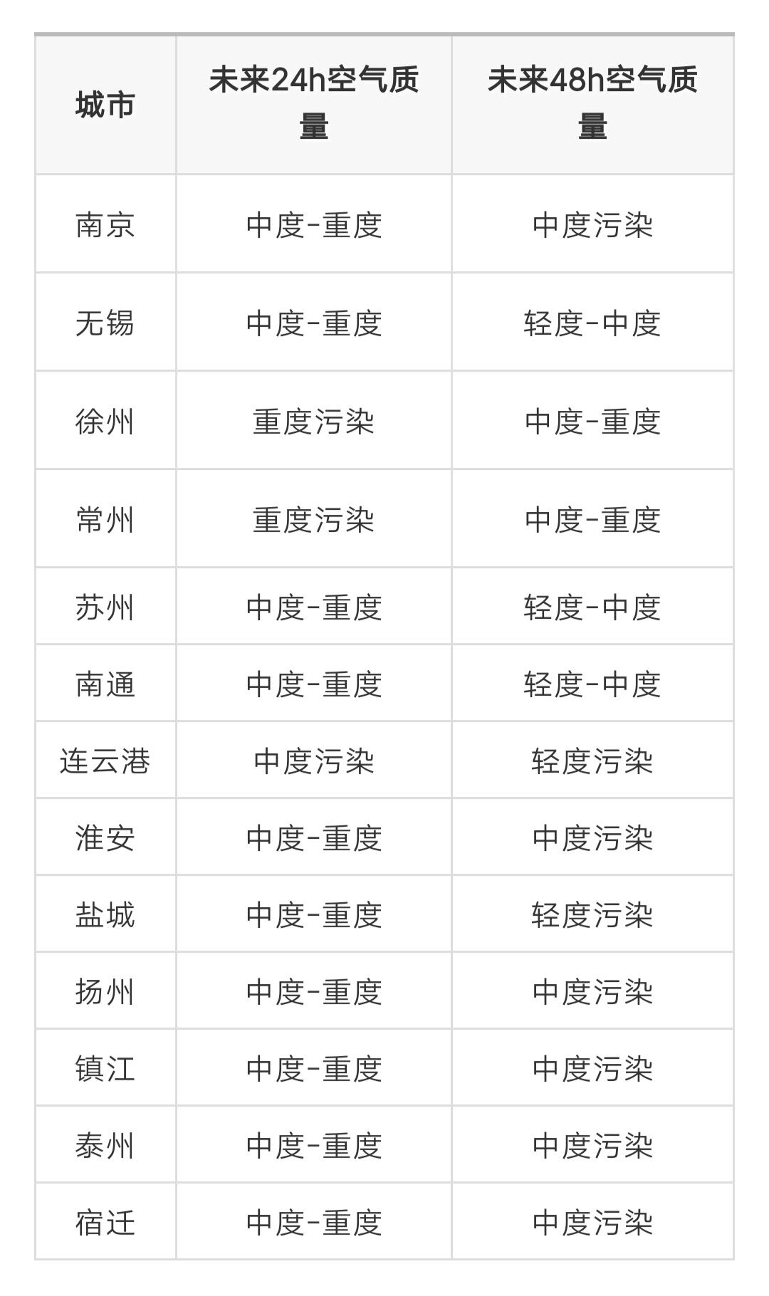 中国江苏网讯11月29日0-12时,受高湿、静稳天气影响,徐州、常州市空气质量为重度污染,连云港、泰州市为轻度污染,宿迁市为良,其他城市为中度污染。
