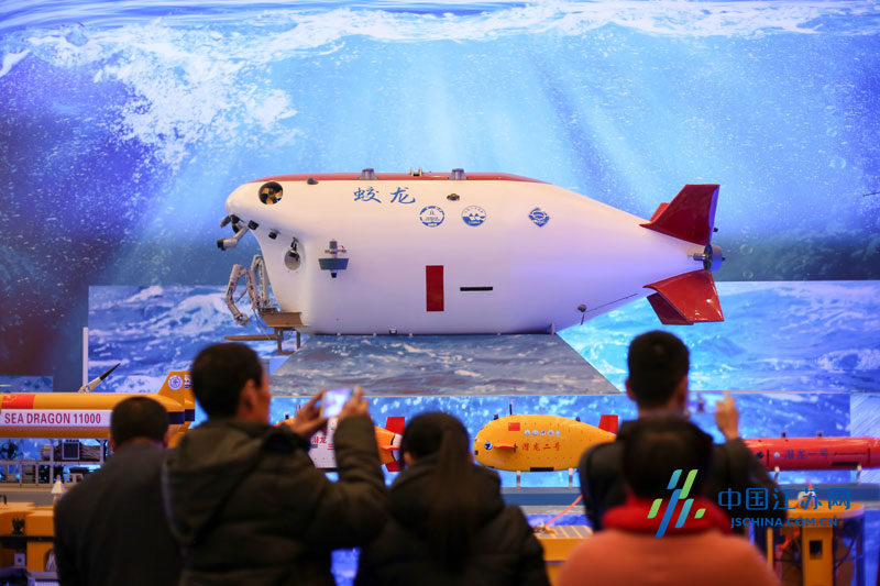 图为: 11月30日,观众在观看江苏制造的“蛟龙号”载人潜水器等模型