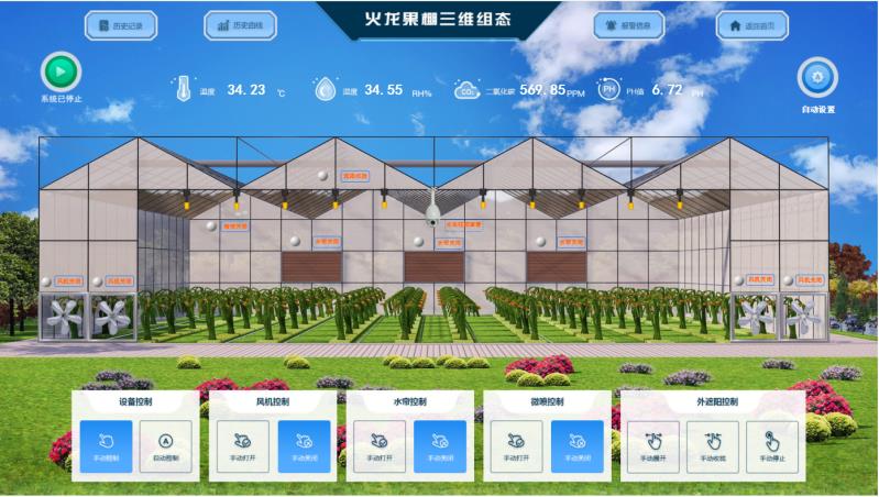“空气温度34.23℃,土壤湿度34.55%RH、二氧化碳569.85PPM、土壤PH6.91。”在江苏省丹阳现代农业示范园区,毛丹正滑动着手机屏幕观测自家果园,点击具体的地点,还能看到大棚内景:一条条长长的火龙果叶垂下来,被红彤彤的火龙果压弯了腰。