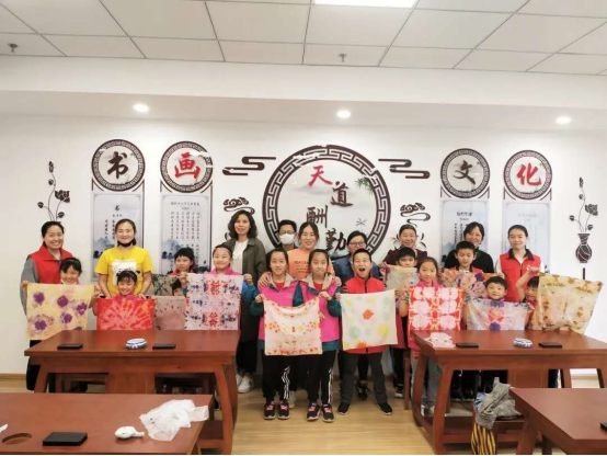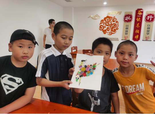 在民俗一角活动计划表上,排布上一系列特色鲜明的民俗技巧,许多技巧随着社会发展一度陷入“无人问津”困境,而民俗课堂的创建,则为民俗技艺的“涅槃重生”提供舞台。创意剪纸、手工扎染、水墨图画、软笔书法、多彩衍纸………一系列精彩纷呈的民俗课程在激发小湫们蓬勃学习热情的同时,更让一大批社区老艺人、老工匠获得了实实在在价值感。今年60多岁的张奶奶退休后赋闲在家,作为社区内有名的剪纸能手,每年过年张奶奶的家里总是围聚满前来学习的妇女。民俗课堂的建立,让张奶奶的剪纸工艺逐渐成为一项大众化的民俗活动,不仅吸引了许多老年人参与,更激发了青年人热情。