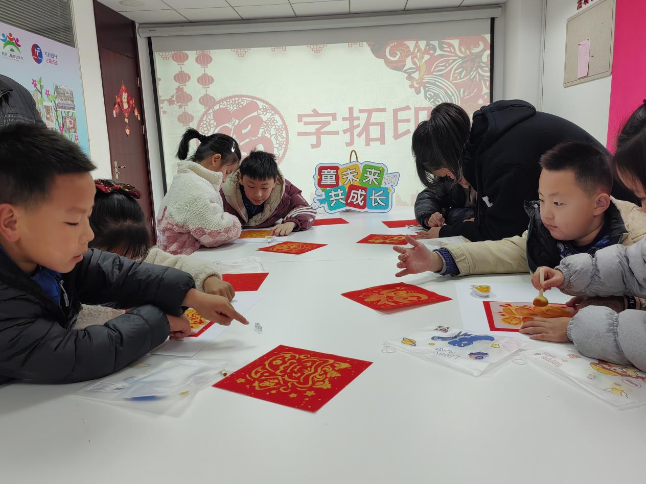 文化体验的最后一站,来到了充满年味儿的投壶和福字拓印环节。投壶既是一种娱乐游戏,又是一种传统礼仪。小朋友们紧握羽箭,屏气敛息,果断投掷。现场欢笑声此起彼伏,小朋友们不仅感受到古代游戏的魅力,也学习了传统礼仪。福字拓印环节更是将节日氛围推向高潮。小朋友们小心翼翼地将宣纸平铺,拿起拓包有节奏地轻轻拍打。不一会儿,空白的宣纸逐渐显现出一个个饱满喜庆的“福”字,有的小朋友别出心裁,在福字周围添上几朵小花、几个小鞭炮,让福字更显喜庆,现场欢声笑语,洋溢着喜庆的气氛。