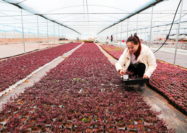 中国江苏网11月25日宿迁讯(通讯员 丁华明 马天明 记者 薛惠芹)11月25日,在沭阳县耿圩镇淮西村一个新扩建的多肉电商产业园内,多肉种植户正忙着管理、直播、销售多肉植物。时下虽然已经进入初冬,有“多肉小镇”之称的耿圩镇,多肉生产势头依然未减。据了解,耿圩镇进一步加快扶持多肉电商产业发展,已培植多肉植物面积近5000亩,建有各类温室大棚150万平方米,培育多肉花卉品种近千种,年产值3亿元,带动就业7000余人,其中低收入农户近2000人,人均月工资3500元。