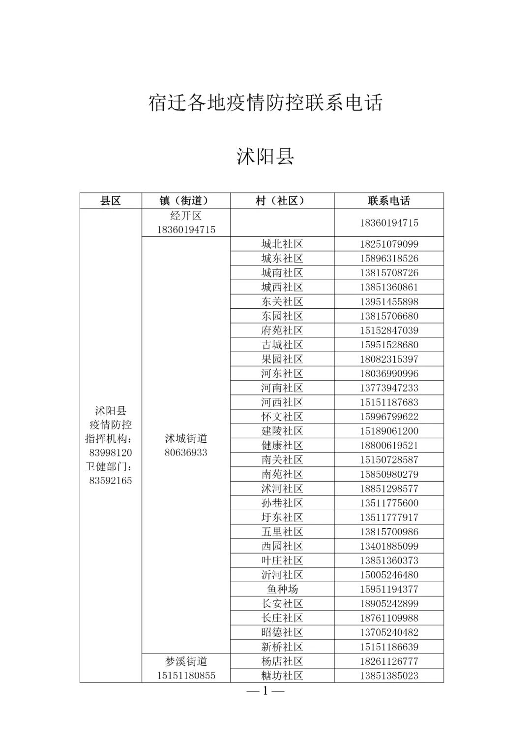 为进一步做好疫情防控工作,现将宿迁市各地疫情防控联系电话予以公布,请来宿返宿人员提前向所属村(社区)进行咨询和报备,按照相关规定做好健康管理工作。