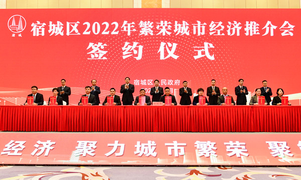 中国江苏网11月16日宿迁讯(通讯员 沈倩 记者 薛惠芹)城市奥特莱斯、电商直播基地、数字经济产业园……11月16日,在宿迁市宿城区2022年繁荣城市经济推介会上,现场签约24个项目,涉及数字经济、现代物流、现代商贸、居民服务、信息科技、文化旅游、现代金融等领域,随着一个个高品质的现代服务业项目落地宿城,将进一步丰富城市业态,促进城市经济繁荣。
