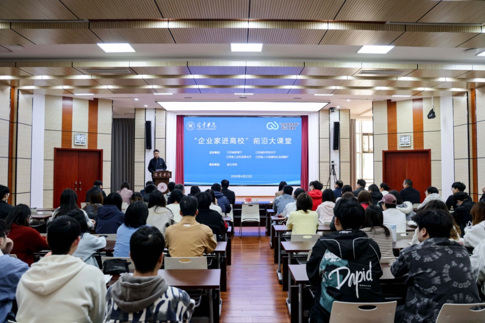 中国江苏网4月24日宿迁讯 4月23日,由江苏省教育厅、省科技厅、省工信厅、省人社厅联合主办,宿迁学院承办的“企业家进高校”前沿大课堂在图书馆学术报告厅开讲。活动特邀江苏奇纳新材料科技有限公司董事长、清华大学材料学博士彭伟平作专题报告。宿迁学院党委副书记侍旭出席活动并致辞,党委常委、统战部部长、教务处处长陆海霞,各二级学院教学负责人及师生代表参加活动。