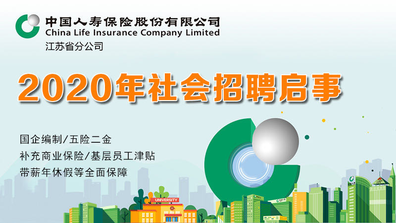 落实“稳就业”政策,担当国有企业责任。中国人寿江苏省分公司(以下简称“江苏国寿”)全面启动2020年社会招聘。江苏省国寿下辖13家市级分公司,92家县级支公司、969个营销服务部,将提供224个岗位,招聘292名管理类人才。即“千帆竞发”第五批社会招聘;重点城市人才引进;省分公司理赔岗人员专项招聘。